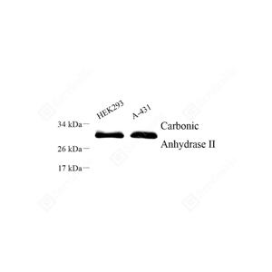 CA2(carbonic anhydrase II ) is also named as Car2, CA-II, CAII and belongs to the alpha-carbonic anhydrase family. It reversibly hydrates CO2 in cellular ion transport and homeostasis. CA2 is essential for bone resorption and osteoclast differentiation. It regulates SLC9A1 activity via a phosphorylation-regulated CAII binding site in SLC9A1 tail. It also may be involved in the development of brain. Defects in CA2 are the cause of osteopetrosis autosomal recessive type 3 (OPTB3).
