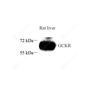WB检测GCKR蛋白(货号 GB113849). 样品: 经RIPA裂解液(货号G2002)处理的蛋白质. 封闭: 3%脱脂牛奶(货号GC310001)溶于TBST溶液, 室温孵育1小时. —抗: 1: 3000稀释, 4℃ 孵育过夜. 二抗: HRP标记山羊抗兔IgG (H+L) (货号GB23303), 1: 5000稀释, 室温孵育1小时. |