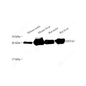 Glutathione S-transferase A3 (GSTA3) belongs to the alpha class genes that are located in a cluster mapped to chromosome 6. Genes of the alpha class are highly related and encode enzymes with glutathione peroxidase activity. However, during evolution, this alpha class gene diverged accumulating mutations in the active site that resulted in differences in substrate specificity and catalytic activity. GSTA3 catalyzes the double bond isomerization of precursors for progesterone and testosterone during the biosynthesis of steroid hormones.