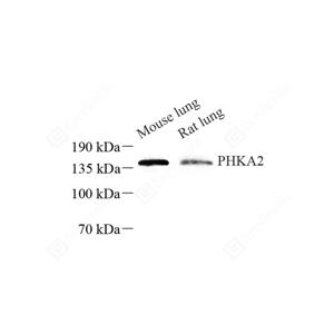 WB检测PHKA2蛋白(货号 GB115669). 样品: 经RIPA裂解液(货号G2002)处理的蛋白质. 封闭: 3%脱脂牛奶(货号GC310001)溶于TBST溶液, 室温孵育1小时. —抗: 1: 500稀释, 4℃ 孵育过夜. 二抗: HRP标记山羊抗兔IgG (H+L) (货号GB23303), 1: 5000稀释, 室温孵育1小时. |