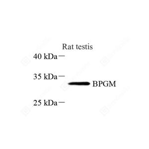 WB检测BPGM蛋白(货号 GB114289). 样品: 经RIPA裂解液(货号G2002)处理的蛋白质. 封闭: 封闭: 3%脱脂牛奶(货号GC310001)溶于TBST溶液, 室温孵育1小时. —抗: 1: 1000稀释, 4℃ 孵育过夜. 二抗: HRP标记山羊抗兔IgG (H+L) (货号GB23303), 1: 5000稀释, 室温孵育1小时. |