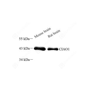 CIAO1, also named as CIA1 or WDR39, is a essential component of the cytosolic iron-sulfur (Fe/S) protein assembly machinery. CIAO1 seems to specifically modulate the transactivation activity of WT1 and may function to regulate the physiological functions of WT1 in cell growth and differentiation. It may also play a role in chromosome segregation.Key component of the cytosolic iron-sulfur protein assembly (CIA) complex, a multiprotein complex that mediates the incorporation of iron-sulfur cluster into extramitochondrial Fe/S proteins .As a CIA complex component, interacts specifically with CIAO2A or CIAO2B and MMS19 to assist different branches of iron-sulfur protein assembly, depending of its interactors.