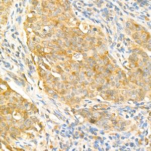 IHC检测FPGT蛋白(货号 GB114448). 样品: 人子宫内膜癌, 4%多聚甲醛 (货号G1101) 固定12-24小时. 抗原修复: 柠檬酸抗原修复液(干粉, pH 6.0) (G1201), 98℃, 20分钟. —抗: 1: 3000稀释, 4℃ 孵育过夜. 二抗: HRP标记山羊抗兔IgG (H+L) (货号GB23303), 1: 200稀释, 室温孵育1小时. |