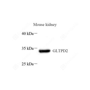 WB检测GLTPD2蛋白(货号 GB114222). 样品: 经RIPA裂解液(货号G2002)处理的蛋白质. 封闭: 3%脱脂牛奶(货号GC310001)溶于TBST溶液, 室温孵育1小时. —抗: 1: 1000稀释, 4℃ 孵育过夜. 二抗: HRP标记山羊抗兔IgG (H+L) (货号GB23303), 1: 5000稀释, 室温孵育1小时. |