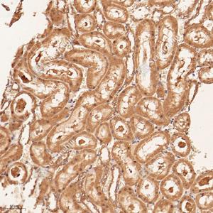 IHC检测Neutral alpha-glucosidase C蛋白(货号 GB115222). 样品: 大鼠肾, 4%多聚甲醛 (货号G1101) 固定12-24小时. 抗原修复: Tris-EDTA抗原修复液(pH 9.0) (G1203), 98℃, 20分钟. —抗: 1: 700稀释, 4℃ 孵育过夜. 二抗: HRP标记山羊抗兔IgG (H+L) (货号GB23303), 1: 200稀释, 室温孵育1小时. |
