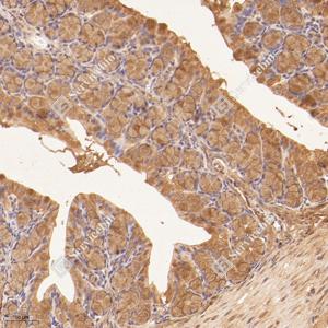 IHC检测Neutral alpha-glucosidase C蛋白(货号 GB115222). 样品: 大鼠结肠, 4%多聚甲醛 (货号G1101) 固定12-24小时. 抗原修复: Tris-EDTA抗原修复液(pH 9.0) (G1203), 98℃, 20分钟. —抗: 1: 700稀释, 4℃ 孵育过夜. 二抗: HRP标记山羊抗兔IgG (H+L) (货号GB23303), 1: 200稀释, 室温孵育1小时. |