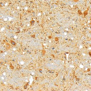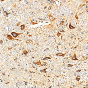 IHC检测Beclin 1蛋白(货号 GB115741). 样品: 大鼠脑, 4%多聚甲醛 (货号G1101) 固定12-24小时. 抗原修复: 柠檬酸抗原修复液(干粉, pH 6.0) (G1201), 98℃, 20分钟. —抗: 1: 600稀释, 4℃ 孵育过夜. 二抗: S-vision免疫组化多聚二抗(山羊抗兔),即用型 (货号G1302), 室温孵育20分钟. |