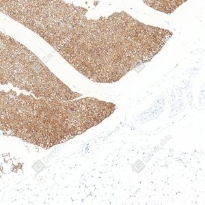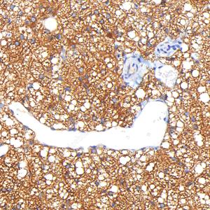 | IHC检测UCP1蛋白(货号 GB152174). 样品: 大鼠棕色脂肪, 4%多聚甲醛 (货号G1101) 固定12-24小时. 抗原修复: 柠檬酸抗原修复液(干粉, pH 6.0) (G1201), 高压锅均匀喷气计时2分钟. —抗: 1: 1000稀释, 4℃ 孵育过夜. 二抗: S-vision免疫组化多聚二抗(山羊抗兔),即用型 (货号G1302), 室温孵育20分钟. |
