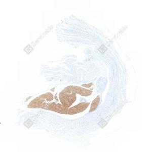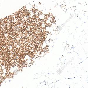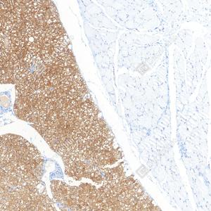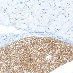 | IHC检测UCP1蛋白(货号 GB152174). 样品: 大鼠棕色脂肪, 4%多聚甲醛 (货号G1101) 固定12-24小时. 抗原修复: 柠檬酸抗原修复液(干粉, pH 6.0) (G1201), 高压锅均匀喷气计时2分钟. —抗: 1: 300稀释, 4℃ 孵育过夜. 二抗: S-vision免疫组化多聚二抗(山羊抗兔),即用型 (货号G1302), 室温孵育20分钟. |