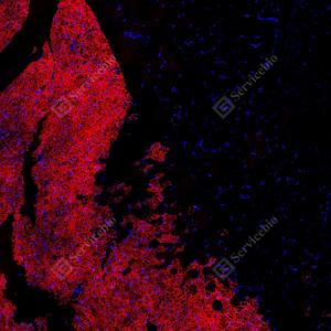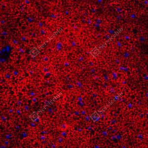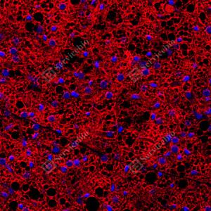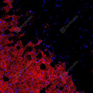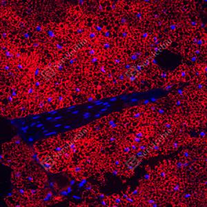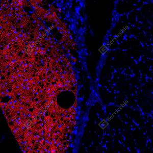 | IF检测UCP1蛋白(货号 GB152174)(红色). 样品: 大鼠棕色脂肪, 4%多聚甲醛 (货号G1101) 固定12-24小时. 抗原修复: 柠檬酸抗原修复液(干粉, pH 6.0) (G1201), 高压锅均匀喷气计时2分钟. 封闭: 3% BSA(货号GC305010)的PBS溶液, 室温孵育30分钟. —抗: 1: 300稀释, 4℃ 孵育过夜. 二抗: Cy3标记山羊抗兔IgG (H+L) (货号GB21303), 1: 300稀释, 室温孵育1小时. |