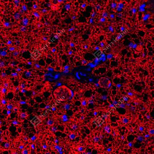 | IF检测UCP1蛋白(货号 GB152174)(红色). 样品: 小鼠棕色脂肪, 4%多聚甲醛 (货号G1101) 固定12-24小时. 抗原修复: 柠檬酸抗原修复液(干粉, pH 6.0) (G1201), 高压锅均匀喷气计时2分钟. 封闭: 3% BSA(货号GC305010)的PBS溶液, 室温孵育30分钟. —抗: 1: 1000稀释, 4℃ 孵育过夜. 二抗: Cy3标记山羊抗兔IgG (H+L) (货号GB21303), 1: 300稀释, 室温孵育1小时. |