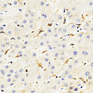 IHC检测TMS1/ASC蛋白(货号 GB115270). 样品: 人肝, 4%多聚甲醛 (货号G1101) 固定12-24小时. 抗原修复: 柠檬酸抗原修复液(干粉, pH 6.0) (G1201), 98℃, 20分钟. —抗: 1: 1800稀释, 4℃ 孵育过夜. 二抗: HRP标记山羊抗兔IgG (H+L) (货号GB23303), 1: 200稀释, 室温孵育1小时. |