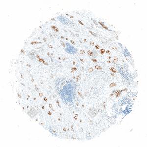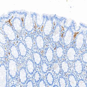 | IHC检测Lysozyme蛋白(货号 GB152948). 样品: 人结肠, 4%多聚甲醛 (货号G1101) 固定12-24小时. 抗原修复: Tris-EDTA抗原修复液(pH 9.0) (G1203), 100℃, 25分钟. —抗: 1: 1000稀释, 4℃ 孵育过夜. 二抗: S-vision免疫组化多聚二抗(山羊抗小鼠), 即用型(货号G1301), 室温孵育20分钟. |
