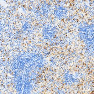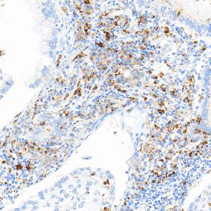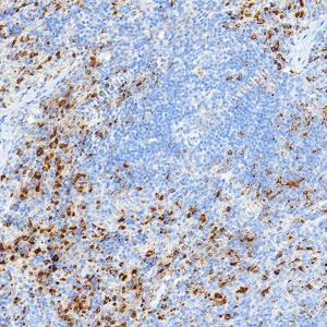 | IHC检测Lysozyme蛋白(货号 GB152948). 样品: 小鼠脾, 4%多聚甲醛 (货号G1101) 固定12-24小时. 抗原修复: Tris-EDTA抗原修复液(pH 9.0) (G1203), 100℃, 25分钟. —抗: 1: 1000稀释, 4℃ 孵育过夜. 二抗: S-vision免疫组化多聚二抗(山羊抗小鼠), 即用型(货号G1301), 室温孵育20分钟. |