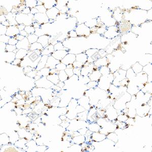| IHC检测Lysozyme蛋白(货号 GB152948). 样品: 小鼠肺, 4%多聚甲醛 (货号G1101) 固定12-24小时. 抗原修复: Tris-EDTA抗原修复液(pH 9.0) (G1203), 100℃, 25分钟. —抗: 1: 1000稀释, 4℃ 孵育过夜. 二抗: S-vision免疫组化多聚二抗(山羊抗小鼠), 即用型(货号G1301), 室温孵育20分钟. |