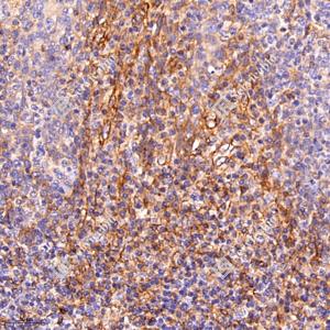 | IHC检测Integrin beta 1蛋白(货号 GB115173). 样品: 人扁桃体, 4%多聚甲醛 (货号G1101) 固定12-24小时. 抗原修复: 柠檬酸抗原修复液(干粉, pH 6.0) (G1201), 98℃, 20分钟. —抗: 1: 300稀释, 4℃ 孵育过夜. 二抗: HRP标记山羊抗兔IgG (H+L) (货号GB23303), 1: 200稀释, 室温孵育1小时. |