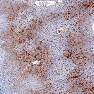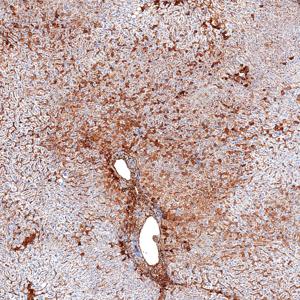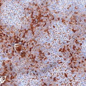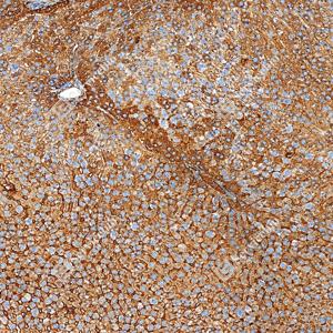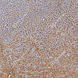 | IHC检测Albumin蛋白(货号 GB152080). 样品: 小鼠肝, 4%多聚甲醛 (货号G1101) 固定12-24小时. 抗原修复: 抗原修复仪 (货号 ARI-4),Tris-EDTA抗原修复液(pH 9.0) (货号G1203), 水浴100℃, 25分钟. —抗: 1: 200稀释, 4℃ 孵育过夜. 二抗: S-vision免疫组化多聚二抗(山羊抗兔),即用型 (货号G1302), 室温孵育20分钟. |