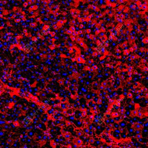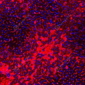 | IF检测Albumin蛋白(货号 GB152080)(红色). 样品: 人肝癌, 4%多聚甲醛 (货号G1101) 固定12-24小时. 抗原修复: 抗原修复仪 (货号 ARI-4),Tris-EDTA抗原修复液(pH 9.0) (货号G1203), 水浴90℃, 30分钟. 封闭: 3% BSA(货号GC305010)的PBS溶液, 室温孵育30分钟. —抗: 1: 200稀释, 4℃ 孵育过夜. 二抗: Cy3标记山羊抗兔IgG (H+L) (货号GB21303), 1: 300稀释, 室温孵育1小时. |