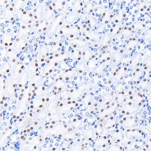| IHC检测HNF-4-alpha蛋白(货号 GB155549). 样品: 小鼠肾, 4%多聚甲醛 (货号G1101) 固定12-24小时. 抗原修复: 抗原修复仪(货号 ARI-4), Tris-EDTA抗原修复液(pH 9.0) (货号G1203), 水浴100℃, 25分钟. —抗: 1: 1500稀释, 4℃ 孵育过夜. 二抗: S-vision免疫组化多聚二抗(山羊抗兔),即用型 (货号G1302), 室温孵育20分钟. |