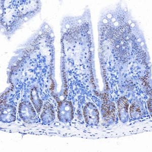 | IHC检测HNF-4-alpha蛋白(货号 GB155549). 样品: 小鼠小肠, 4%多聚甲醛 (货号G1101) 固定12-24小时. 抗原修复: 抗原修复仪(货号 ARI-4), Tris-EDTA抗原修复液(pH 9.0) (货号G1203), 水浴100℃, 25分钟. —抗: 1: 1500稀释, 4℃ 孵育过夜. 二抗: S-vision免疫组化多聚二抗(山羊抗兔),即用型 (货号G1302), 室温孵育20分钟. |