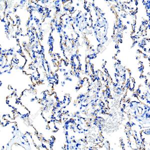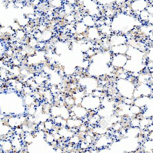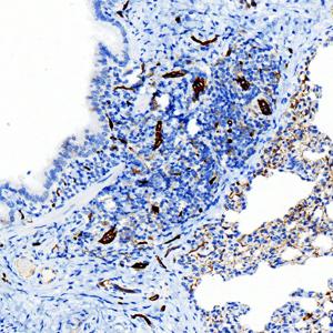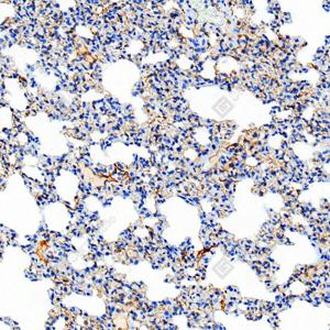 | IHC检测Scavenger receptor BI (SR-BI)蛋白(货号 GB153319). 样品: 小鼠肺, 4%多聚甲醛 (货号G1101) 固定12-24小时. 抗原修复: 柠檬酸抗原修复液 (干粉, pH 6.0) (G1201), 高压锅均匀喷气计时2分钟. —抗: 1: 50稀释, 4℃ 孵育过夜. 二抗: S-vision免疫组化多聚二抗(山羊抗兔),即用型 (货号G1302), 室温孵育20分钟. |