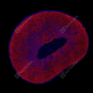 | IF检测Scavenger receptor BI (SR-BI)蛋白(货号 GB153319)(红色). 样品: 大鼠睾丸, 4%多聚甲醛 (货号G1101) 固定12-24小时. 抗原修复: 柠檬酸抗原修复液 (干粉, pH 6.0) (G1201), 高压锅均匀喷气计时2分钟. —抗: 0. 0763888888888889稀释, 4℃ 孵育过夜. 二抗: Cy3标记山羊抗兔IgG (H+L) (货号GB21303), 1: 300稀释, 室温孵育1小时. |