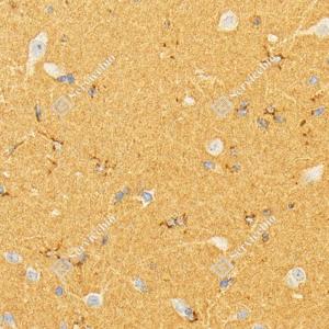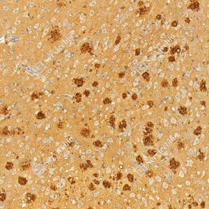 IHC检测Apolipoprotein E蛋白(货号 GB115743). 样品: 大鼠脑, 4%多聚甲醛 (货号G1101) 固定12-24小时. 抗原修复: 柠檬酸抗原修复液(干粉, pH 6.0) (G1201), 98℃, 20分钟. —抗: 1: 1000稀释, 4℃ 孵育过夜. 二抗: S-vision免疫组化多聚二抗(山羊抗兔),即用型 (货号G1302), 室温孵育20分钟. |