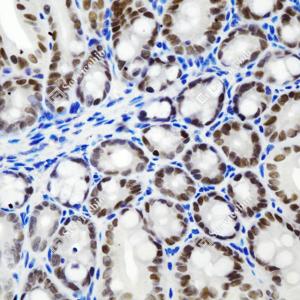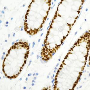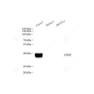 CDX2, also named as Homeobox protein CDX-2, is a 313 amino acid protein, which contains one homeobox DNA-binding domain and belongs to the Caudal homeobox family. CDX2 localizes in the nucleus and is involved in the transcriptional regulation of multiple genes expression in the intestinal epithelium. The relative expression of CDX1 to CDX2 protein may be important in the anterior to posterior patterning of the intestinal epithelium and in defining patterns of proliferation and differentiation along the crypt-villus axis.