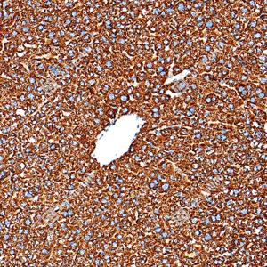 | IHC检测SOD2/MnSOD蛋白(货号 GB151875). 样品: 小鼠肝, 4%多聚甲醛 (货号G1101) 固定12-24小时. 抗原修复: Tris-EDTA抗原修复液(pH 9.0) (G1203), 100℃, 25分钟. —抗: 1: 2500稀释, 4℃ 孵育过夜. 二抗: S-vision免疫组化多聚二抗(山羊抗小鼠), 即用型(货号G1301), 室温孵育20分钟. |