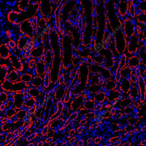 | IF检测SOD2/MnSOD蛋白(货号 GB151875)(红色). 样品: 大鼠肾, 4%多聚甲醛 (货号G1101) 固定12-24小时. 抗原修复: Tris-EDTA抗原修复液(pH 9.0) (G1203), 100℃, 25分钟. 封闭: 3% BSA(货号GC305010)的PBS溶液, 室温孵育30分钟. —抗: 1: 2500稀释, 4℃ 孵育过夜. 二抗: Cy3标记山羊抗小鼠IgG (H+L) (货号GB21301), 1: 300稀释, 室温孵育1小时. |