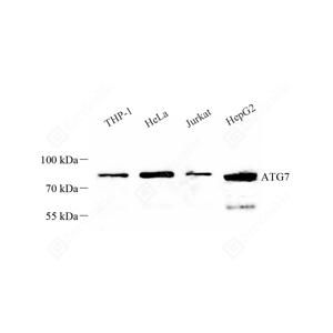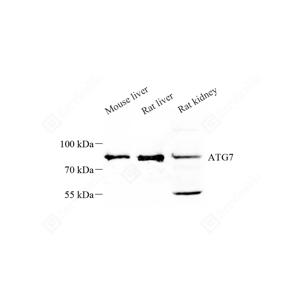 Atg7 is an E1-like enzyme that is specifically involved in autophagosome formation and is essential for autophagy. As an autophagic-related protein it is required for linking to Atg12, Atg5 and Atg8, which are essential for Atg conjugation and autophagosome formation. Atg7 has been reported as an important regulator of autophagy with starvation-induced or chemotherapeutic agent treatment. The high expression level of ATG7 is related to the survival of patients with breast cancer. There are several isoforms of ATG7 protein ranged from 68 kDa to 78 kDa.