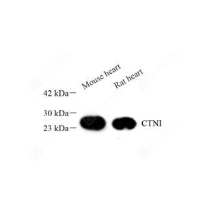 WB检测Cardiac Troponin I蛋白(货号 GB122408). 样品: 经RIPA裂解液(货号G2002)处理的蛋白质. 封闭: 3%脱脂牛奶(货号GC310001)溶于TBST溶液, 室温孵育1小时. —抗: 1: 1000稀释, 4℃ 孵育过夜. 二抗: HRP标记山羊抗小鼠IgG (H+L) (货号GB23301), 1: 5000稀释, 室温孵育1小时. |