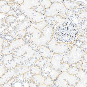 | IHC检测Collagen IV蛋白(货号 GB115688). 样品: 人肾, 4%多聚甲醛 (货号G1101) 固定12-24小时. 抗原修复: 柠檬酸抗原修复液(干粉, pH 6.0) (G1201), 98℃, 20分钟. —抗: 1: 1000稀释, 4℃ 孵育过夜. 二抗: HRP标记山羊抗兔IgG (H+L) (货号GB23303), 1: 200稀释, 室温孵育1小时. |