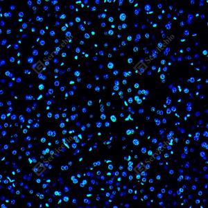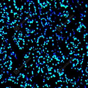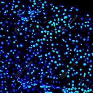 IF检测 Phospho-p70 S6 Kinase (T389)蛋白(货号 GB153805)(绿色). 样品: 小鼠肝, 4%多聚甲醛 (货号G1101) 固定12-24小时. 抗原修复: 柠檬酸抗原修复液 (干粉, pH 6.0) (G1201), 高压锅均匀喷气计时2分钟. —抗: 1: 2000稀释, 4℃ 孵育过夜. 二抗: Alexa Fluor 488标记山羊抗兔IgG (H+L) (货号GB25303), 1: 400稀释, 室温孵育1小时. |