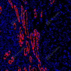 | IF检测Aquaporin 3蛋白(货号 GB15533)(红色). 样品: 大鼠食管, 4%多聚甲醛 (货号G1101) 固定12-24小时. 抗原修复: 抗原修复仪 (货号 ARI-4),Tris-EDTA抗原修复液(pH 9.0) (货号G1203), 水浴90℃, 30分钟. 封闭: 3% BSA(货号GC305010)的PBS溶液, 室温孵育30分钟. —抗: 1: 1000稀释, 4℃ 孵育过夜. 二抗: Cy3标记山羊抗兔IgG (H+L) (货号GB21303), 1: 300稀释, 室温孵育1小时. |
