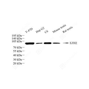 WB检测KMT6/EZH2蛋白(货号 GB150019). 样品: 经RIPA裂解液(货号G2002)处理的蛋白质. 封闭: 3%脱脂牛奶(货号GC310001)溶于TBST溶液, 室温孵育1小时. —抗: 1: 1000稀释, 4℃ 孵育过夜. 二抗: HRP标记山羊抗兔IgG (H+L) (货号GB23303), 1: 5000稀释, 室温孵育1小时. |