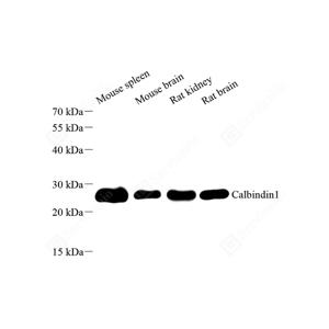 WB检测Calbindin蛋白(货号 GB151211). 样品: 经RIPA裂解液(货号G2002)处理的蛋白质. 封闭: 3%脱脂牛奶(货号GC310001)溶于TBST溶液, 室温孵育1小时. —抗: 1: 500稀释, 4℃ 孵育过夜. 二抗: HRP标记山羊抗兔IgG (H+L) (货号GB23303), 1: 5000稀释, 室温孵育1小时. |