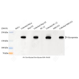 | WB检测P Glycoprotein蛋白(货号 GB155718). 样品: 经RIPA裂解液(货号G2002)处理的蛋白质. 封闭: 3%脱脂牛奶(货号GC310001)溶于TBST溶液, 室温孵育1小时. —抗: 1: 1000稀释, 4℃ 孵育过夜. 二抗: HRP标记山羊抗兔IgG (H+L) (货号GB23303), 1: 5000稀释, 室温孵育1小时. |