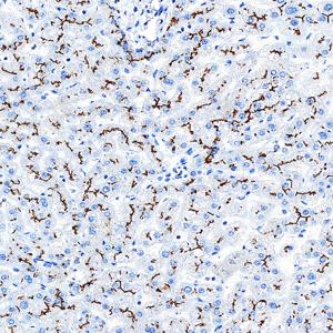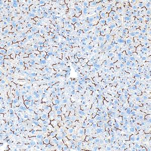 | IHC检测P Glycoprotein蛋白(货号 GB155718). 样品: 大鼠肝, 4%多聚甲醛 (货号G1101) 固定12-24小时. 抗原修复: 抗原修复仪 (货号 ARI-4),Tris-EDTA抗原修复液(pH 9.0) (货号G1203), 水浴100℃, 25分钟. —抗: 1: 1500稀释, 4℃ 孵育过夜. 二抗: S-vision免疫组化多聚二抗(山羊抗兔),即用型 (货号G1302), 室温孵育20分钟. |