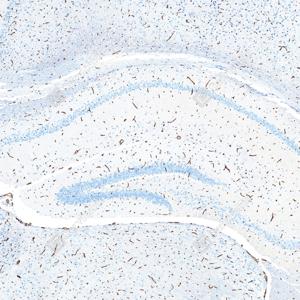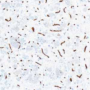 | IHC检测P Glycoprotein蛋白(货号 GB155718). 样品: 小鼠脑, 4%多聚甲醛 (货号G1101) 固定12-24小时. 抗原修复: 抗原修复仪 (货号 ARI-4),Tris-EDTA抗原修复液(pH 9.0) (货号G1203), 水浴100℃, 25分钟. —抗: 1: 1500稀释, 4℃ 孵育过夜. 二抗: S-vision免疫组化多聚二抗(山羊抗兔),即用型 (货号G1302), 室温孵育20分钟. |