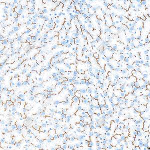 | IHC检测P Glycoprotein蛋白(货号 GB155718). 样品: 人肝, 4%多聚甲醛 (货号G1101) 固定12-24小时. 抗原修复: 抗原修复仪 (货号 ARI-4),Tris-EDTA抗原修复液(pH 9.0) (货号G1203), 水浴100℃, 25分钟. —抗: 1: 2700稀释, 4℃ 孵育过夜. 二抗: S-vision免疫组化多聚二抗(山羊抗兔),即用型 (货号G1302), 室温孵育20分钟. |
