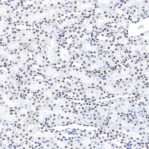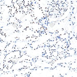| IHC检测HDAC1蛋白(货号 GB15333). 样品: 人肾, 4%多聚甲醛 (货号G1101) 固定12-24小时. 抗原修复: 抗原修复仪 (货号 ARI-4),Tris-EDTA抗原修复液(pH 9.0) (货号G1203), 水浴100℃, 25分钟. —抗: 1: 250稀释, 4℃ 孵育过夜. 二抗: S-vision免疫组化多聚二抗(山羊抗兔),即用型 (货号G1302), 室温孵育20分钟. |