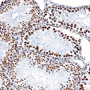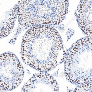 | IHC检测HDAC1蛋白(货号 GB15333). 样品: 小鼠睾丸, 4%多聚甲醛 (货号G1101) 固定12-24小时. 抗原修复: 抗原修复仪 (货号 ARI-4),Tris-EDTA抗原修复液(pH 9.0) (货号G1203), 水浴100℃, 25分钟. —抗: 1: 250稀释, 4℃ 孵育过夜. 二抗: S-vision免疫组化多聚二抗(山羊抗兔),即用型 (货号G1302), 室温孵育20分钟. |
