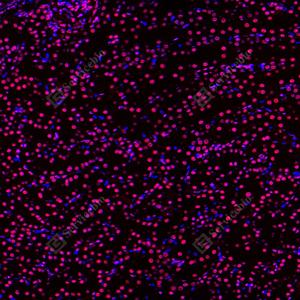 | IF检测HDAC1蛋白(货号 GB15333)(红色). 样品: 小鼠脑, 4%多聚甲醛 (货号G1101) 固定12-24小时. 抗原修复: 抗原修复仪 (货号 ARI-4),Tris-EDTA抗原修复液(pH 9.0) (货号G1203), 水浴90℃, 30分钟. 封闭: 3% BSA(货号GC305010)的PBS溶液, 室温孵育30分钟. —抗: 1: 250稀释, 4℃ 孵育过夜. 二抗: Cy3标记山羊抗兔IgG (H+L) (货号GB21303), 1: 300稀释, 室温孵育1小时. |