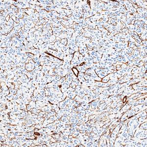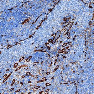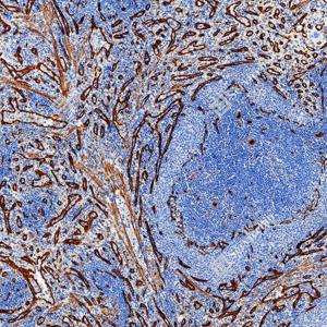 | IHC检测Caveolin-1蛋白(货号 GB15409). 样品: 大鼠脾, 4%多聚甲醛 (货号G1101) 固定12-24小时. 抗原修复: 抗原修复仪 (货号 ARI-4),Tris-EDTA抗原修复液(pH 9.0) (货号G1203), 水浴100℃, 25分钟. —抗: 1: 2000稀释, 4℃ 孵育过夜. 二抗: S-vision免疫组化多聚二抗(山羊抗小鼠), 即用型(货号G1301), 室温孵育20分钟. |