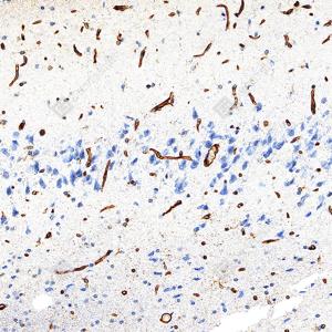 | IHC检测Caveolin-1蛋白(货号 GB15409). 样品: 小鼠脑, 4%多聚甲醛 (货号G1101) 固定12-24小时. 抗原修复: 抗原修复仪 (货号 ARI-4),Tris-EDTA抗原修复液(pH 9.0) (货号G1203), 水浴100℃, 25分钟. —抗: 1: 2000稀释, 4℃ 孵育过夜. 二抗: S-vision免疫组化多聚二抗(山羊抗小鼠), 即用型(货号G1301), 室温孵育20分钟. |