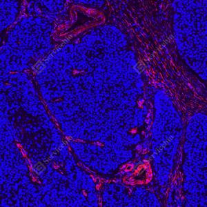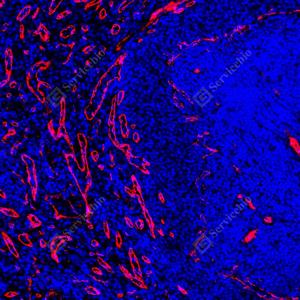 | IF检测Caveolin-1蛋白(货号 GB15409)(红色). 样品: 小鼠脾, 4%多聚甲醛 (货号G1101) 固定12-24小时. 抗原修复: 抗原修复仪 (货号 ARI-4),Tris-EDTA抗原修复液(pH 9.0) (货号G1203), 水浴100℃, 25分钟. 封闭: 3% BSA(货号GC305010)的PBS溶液, 室温孵育30分钟. —抗: 1: 2000稀释, 4℃ 孵育过夜. 二抗: Cy3标记山羊抗小鼠IgG (H+L) (货号GB21301), 1: 300稀释, 室温孵育1小时. |