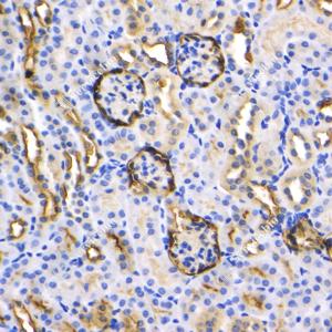 IHC检测CD10蛋白(货号 GB114689). 样品: 大鼠肾, 4%多聚甲醛 (货号G1101) 固定12-24小时. 抗原修复: 柠檬酸抗原修复液(干粉, pH 6.0) (G1201), 98℃, 20分钟. —抗: 1: 800稀释, 4℃ 孵育过夜. 二抗: HRP标记山羊抗兔IgG (H+L) (货号GB23303), 1: 200稀释, 室温孵育1小时. |
