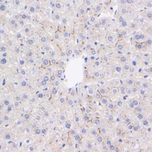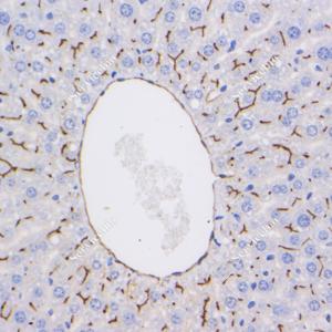 IHC检测CD10蛋白(货号 GB114689). 样品: 小鼠肝, 4%多聚甲醛 (货号G1101) 固定12-24小时. 抗原修复: 柠檬酸抗原修复液(干粉, pH 6.0) (G1201), 98℃, 20分钟. —抗: 1: 800稀释, 4℃ 孵育过夜. 二抗: HRP标记山羊抗兔IgG (H+L) (货号GB23303), 1: 200稀释, 室温孵育1小时. |