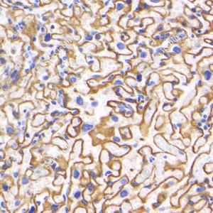 IHC检测CD10蛋白(货号 GB114689). 样品: 人肝, 4%多聚甲醛 (货号G1101) 固定12-24小时. 抗原修复: 柠檬酸抗原修复液(干粉, pH 6.0) (G1201), 98℃, 20分钟. —抗: 1: 800稀释, 4℃ 孵育过夜. 二抗: HRP标记山羊抗兔IgG (H+L) (货号GB23303), 1: 200稀释, 室温孵育1小时. |